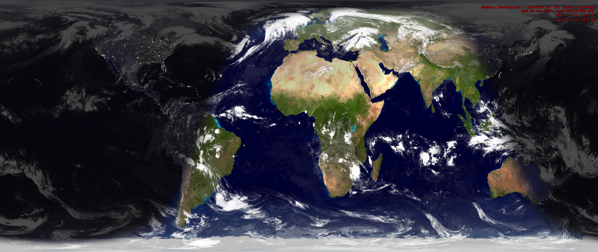 The maps below show the current illumination of the Earth. They allow you to see where on our planet the sun is rising or setting right now, where it is daylight, and where night prevails. These maps can be a helpful tool in searching for the best camera views.